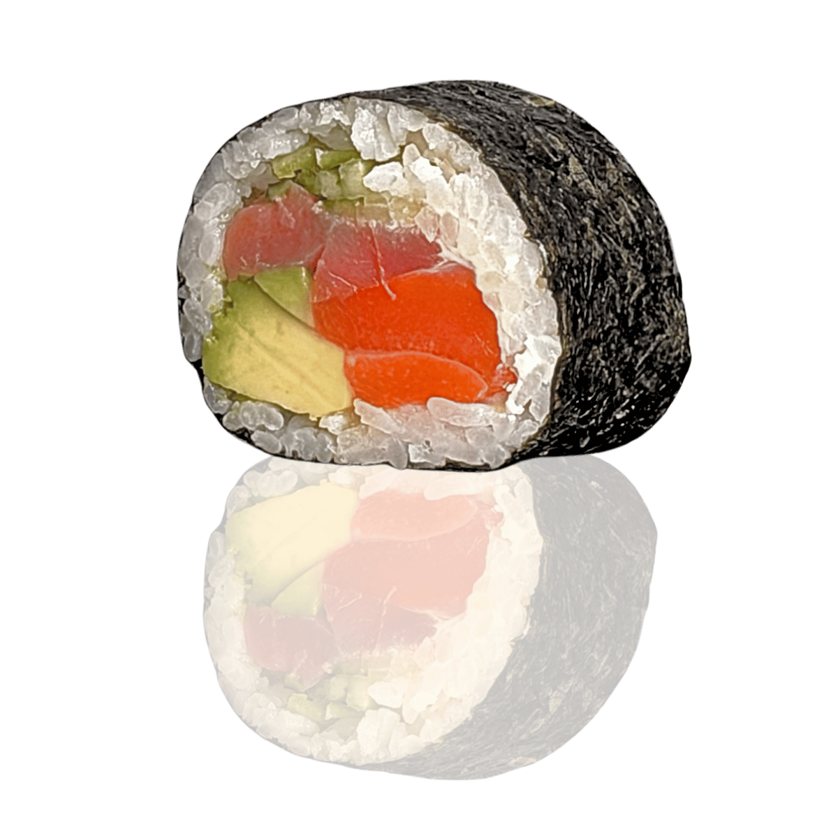 mit Premium-Lachs und Thunfisch, Gurken, Avocado und Sesam